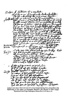 And what about the page from Marlowe’s Massacre at Paris – supposedly* in the author’s own hand, containing a longer speech for the Guise than what appears in the one (and dubious) surviving octavo? Somehow, it’s hard to imagine Marlowe cutting down his work – and besides, he died only a few months after the Admiral’s Men first performed the Massacre… Was the surviving octavo pirated with the help of a greedy player with a leaking memory? Or is it a shortened “touring” version? And if so, who pruned it? Perhaps Shakespeare and Munday, as recent studies seem to suggest? At all events, the discrepancies between the handwritten leaf and the awkward published text open a window on the practices of Elizabethan theatre.