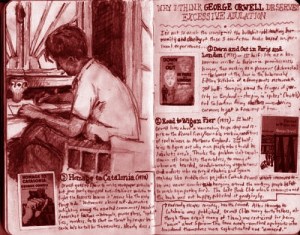 I usually live with my lack of drawing skills, but now and then it will up and bite me. At times it is all about a wish to draw one of my characters, or a scene I wrote, or a costume or setting idea, at times it’s just because I would like to sketch an elephant or a tree for the fun of it, at times it is because I chance on something like this Huff Post article about Joshua Landsman’s book journal.